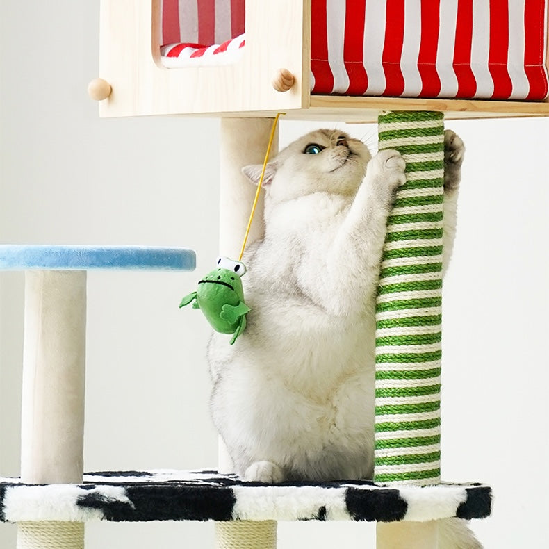 Bring rustic charm into your feline’s life with the ZEZE Farmhouse Cat Climbing Tower. Inspired by a countryside barn, this cozy multi-level post is purrfect for climbing, scratching, hiding, and relaxing. Designed for playful paws and afternoon naps, it’s a warm and welcoming retreat for your indoor explorer. Crafted with durable materials and natural textures like sisal rope and woven fabric, this stylish farmhouse is a beautiful blend of comfort and countryside chic.