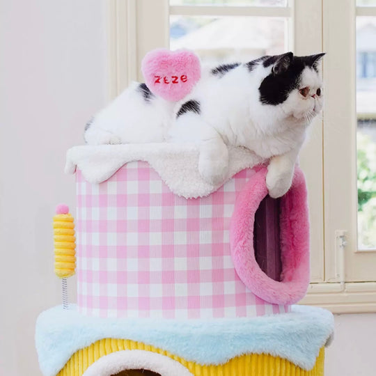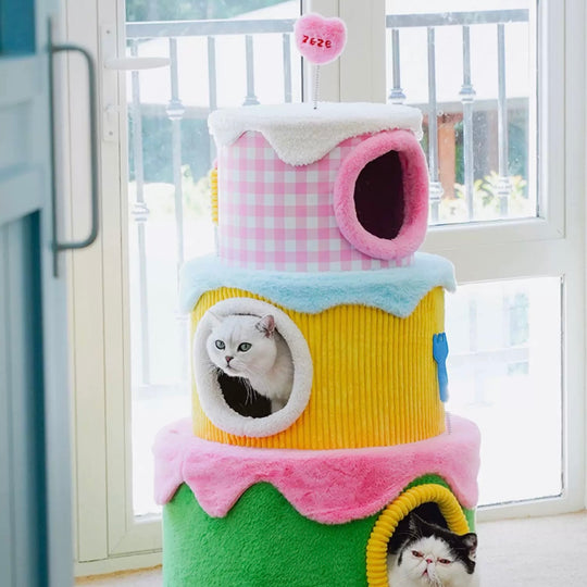 ZEZE Creamy Three-Tier Cake Cat Climber