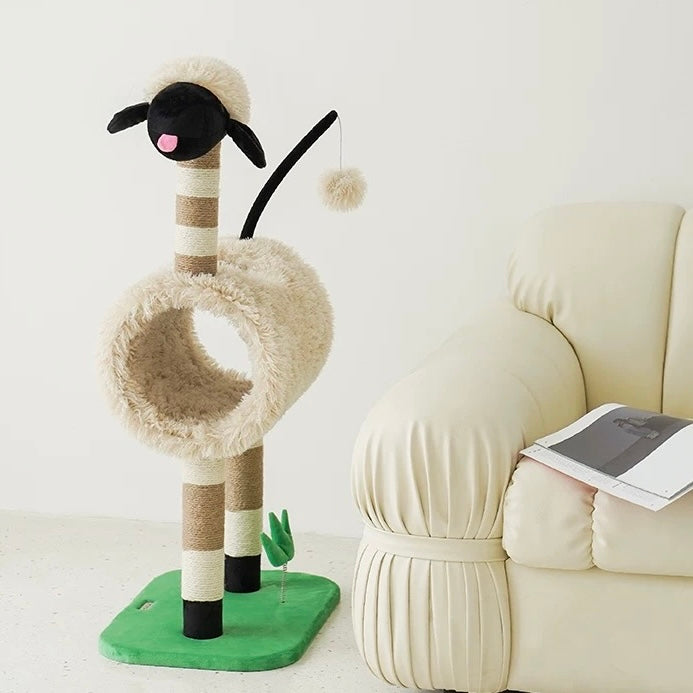 Give your kitty the ultimate play and rest station with the ZEZE Sheep Cat Tree with Tunnel & Scratcher. Designed in a charming sheep theme, this cat furniture blends fun style with practical functionality. The built-in tunnel provides a cozy hideaway, while the sisal-wrapped scratcher encourages healthy claw care and deters unwanted scratching on furniture. A raised perch on top offers the perfect spot for lounging or surveying the room. Crafted with sturdy, pet-safe materials, this cat tree is stable enough for active play while remaining compact enough to fit seamlessly into your home. With multiple activities in one, it’s the paw-fect combination of cuteness, comfort, and enrichment. 🐑🐾