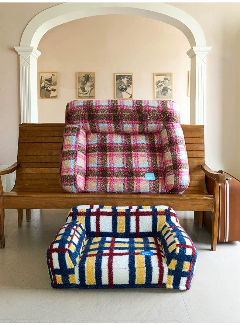 Add comfort and retro charm to your pet’s lounge spot with the ZEZE Vintage Plaid Pet Sofa Bed. Inspired by the fusion of retro plaid and modern home décor, this stylish pet couch is available in two unique patterns: the Mondrian-inspired check for a modern artistic vibe, and the Pink Plus plaid for a softer, cozier look.