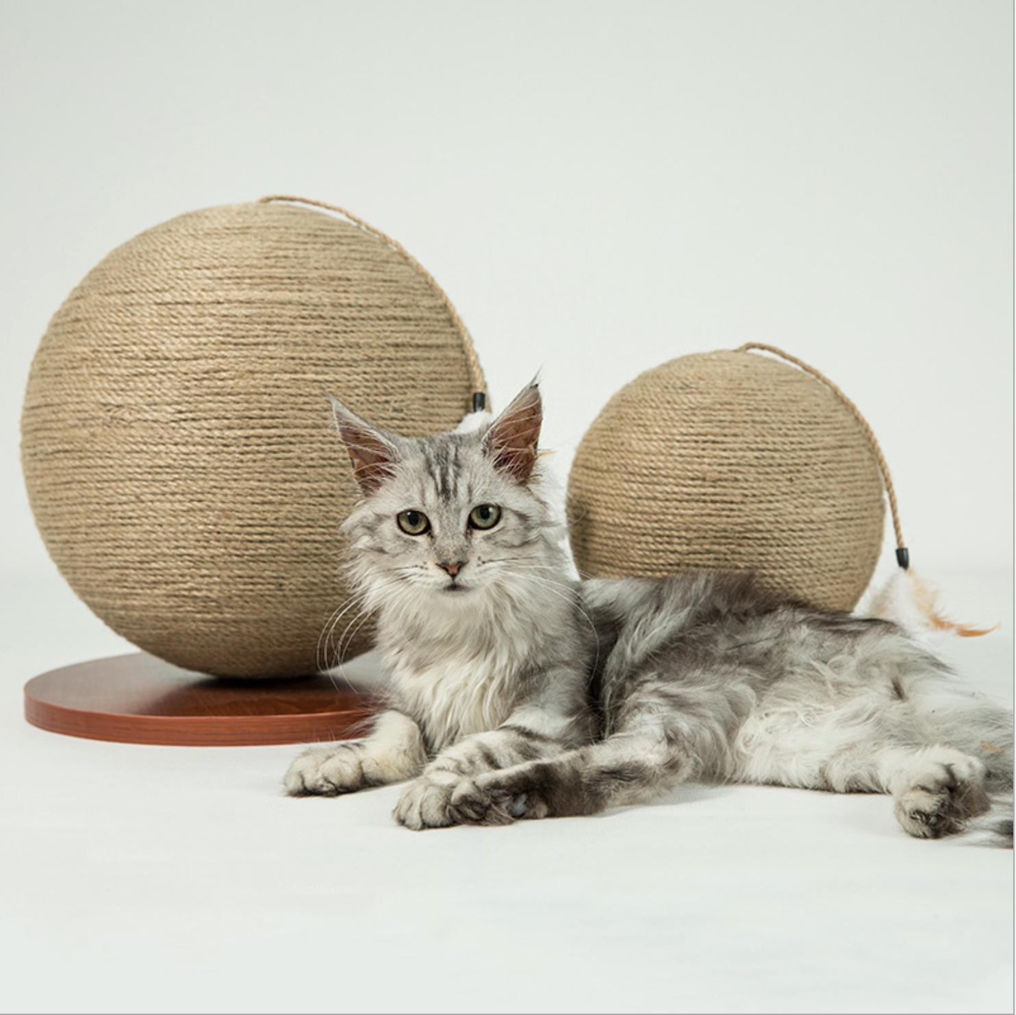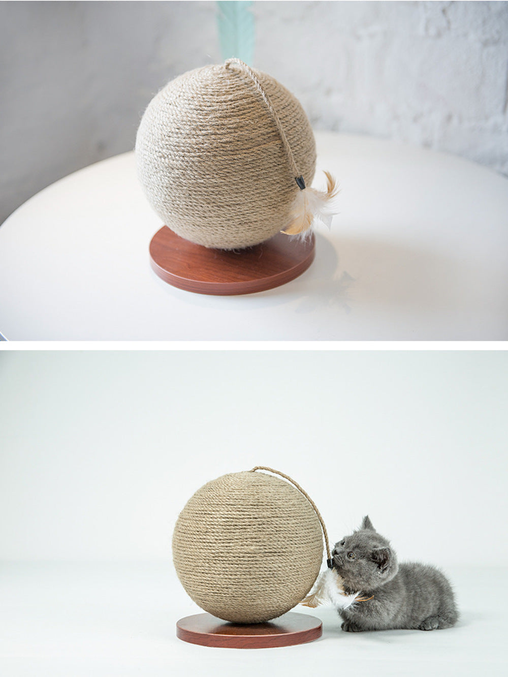 The spherical shape provides flexibility and sturdiness to the device, making it a perfect tool for your feline’s scratching and stretching needs. Top tassel with a toy allows your kitty to engage in play and preventing destructive household behavior. For additional fun, sprinkle catnip on the spherical scratcher and watch your cat’s grooming experience become more interactive. Our minimalistic color palette and design include a finished base for the spherical scratcher, making it perfect décor for a modern home. Promote healthy living, grooming, and play for your kitty while staying in style. The lightweight ball rolls with ease and will keep your cat entertained and on their toes! Your cat’s natural instinct to pounce and claw will kick in naturally! Relieve your cat’s boredom with our spherical scratcher ball and encourage a healthy lifestyle!