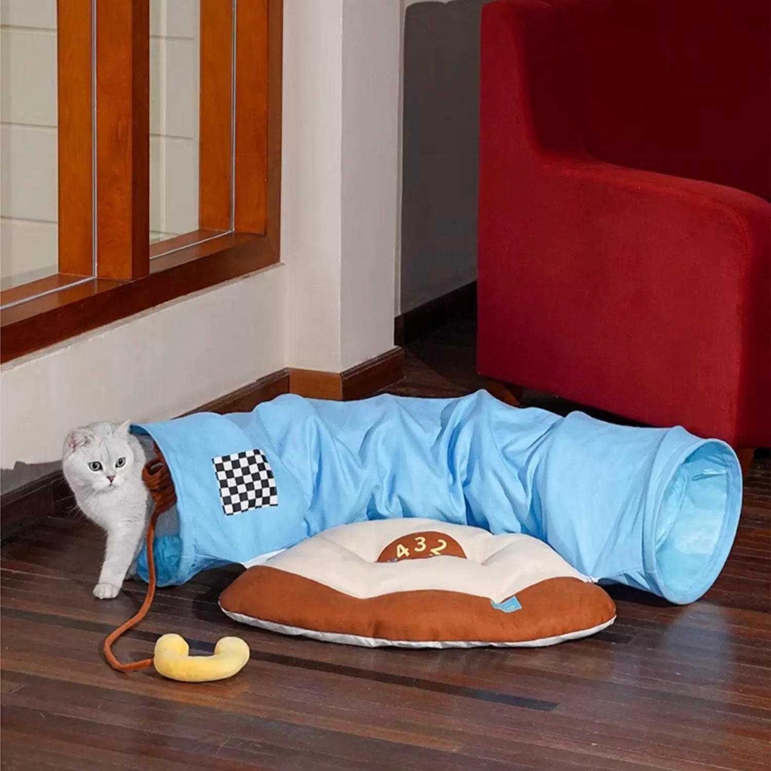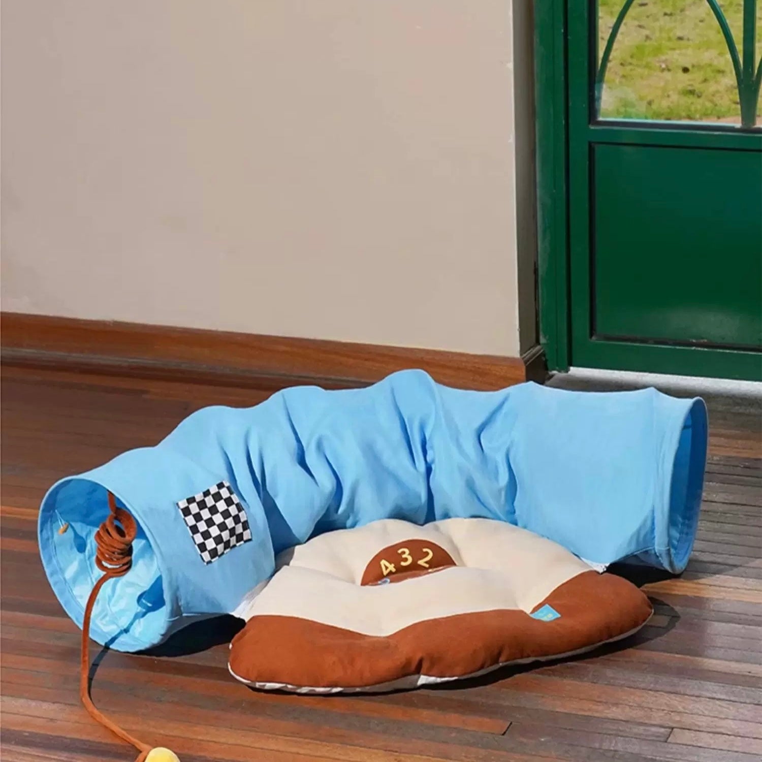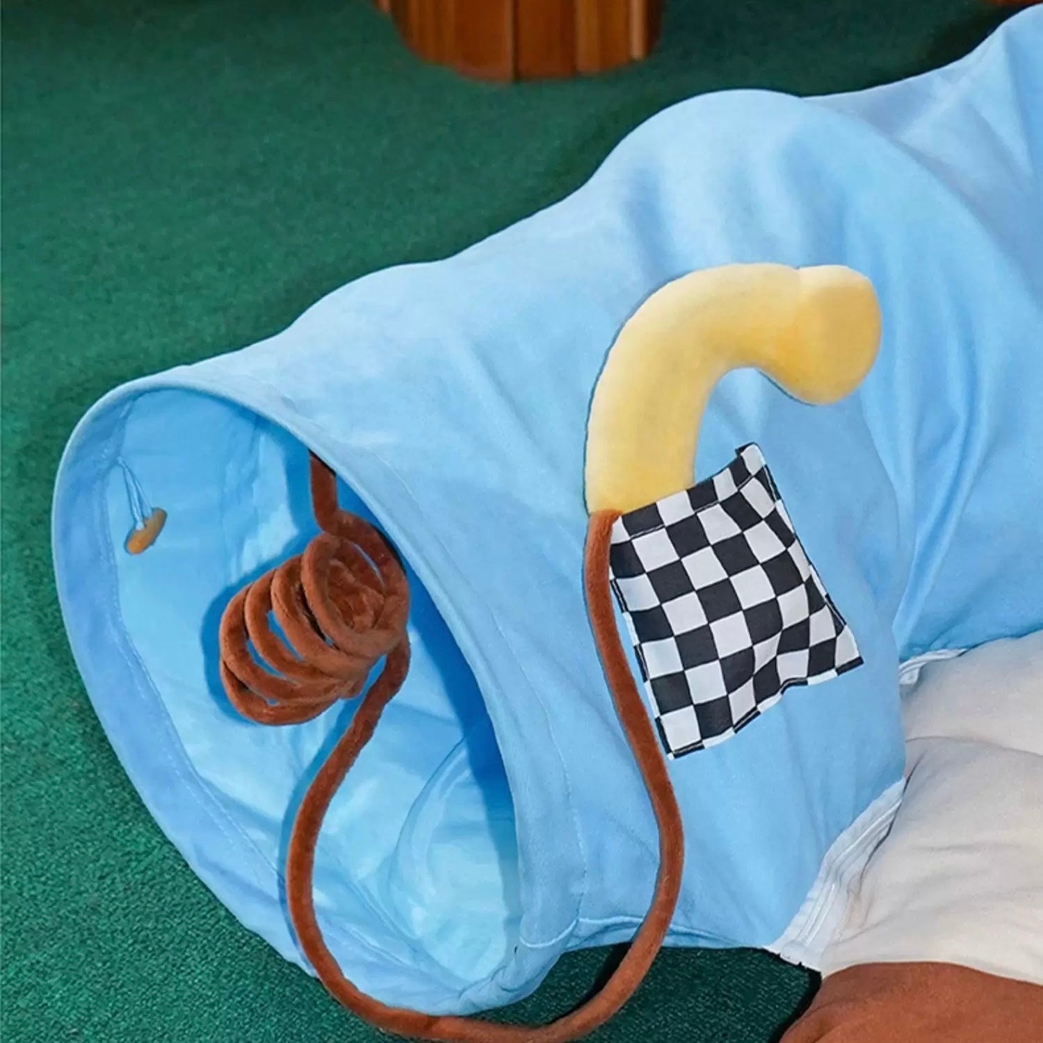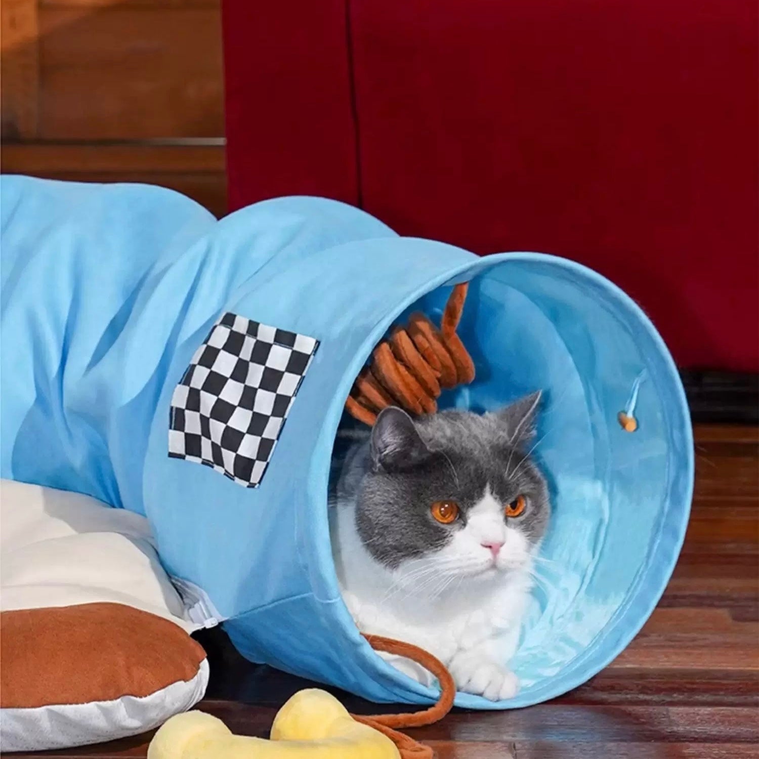 Ring, ring! The ZEZE Retro Telephone Tunnel Bed brings nostalgic charm and multifunctional fun to your pet's world. Shaped like a classic rotary telephone, this soft tunnel doubles as a cozy hideaway and an interactive play zone. Ideal for cats and small dogs who love to hide, nap, or dash through tunnels, it adds personality to any room while keeping your furry friend entertained and comfortable.